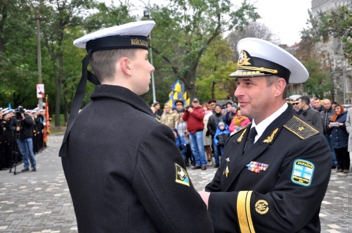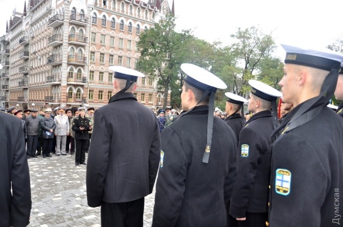 Как сообщили в пресс-службе ВМСУ, церемония прошла вчера, в День защитника Украины, на площади возле памятника Тарасу Шевченко.