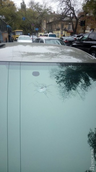Как передает корреспондент «Думской» с места событий, на «Ситроене» замечены следы от пяти пуль. Сам водитель сбежал. Заблокировано движение троллейбусов.