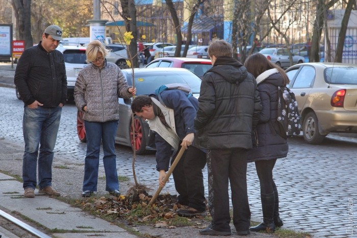 Сегодня днем на Французском бульваре одесситы провели очередную акцию по восстановлению зеленых насаждений, частично уничтоженных коммунальщиками.