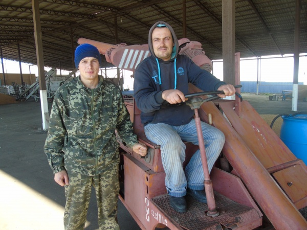 Робітники току Віталій Вікторович Беспалий і Микола Миколайович Спалату (на знімку) протруюють насіння. Обидва працівники – молоді, але зі своїми обов'язками справляються добре, відповідально ставляться до дорученої роботи. Хлопці працюють швидко, якісно, як кажуть, на совість. Добре, що молодь працює в нашому господарстві, а не шукає легкого хліба в місті.