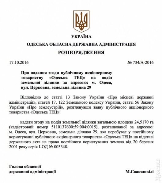 Вопрос одесской ТЭЦ поднимался и на сегодняшнем аппаратном совещании. Городской голова Геннадий Труханов забеспокоился о том, что бывший губернатор Одесской области Михаил Саакашвили перед своим уходом с должности подписал некое сомнительное распоряжение, в котором фигурировала земля тэплоэлектроцентрали.