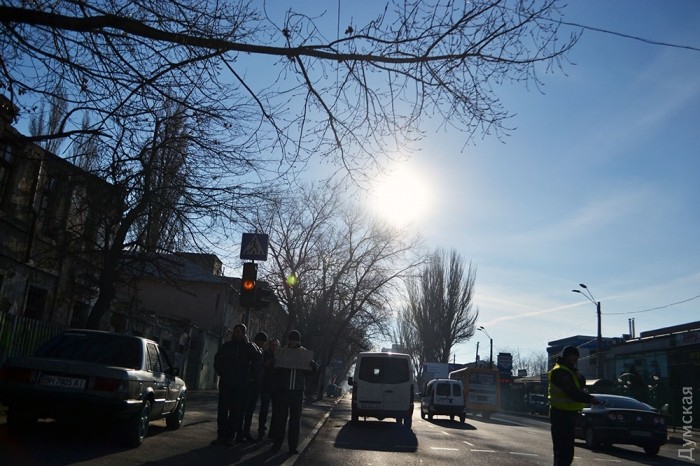 Протестующие ходят по пешеходному переходу на Николаевской дороге, в районе 7-й Пересыпской. Аналогичная акция с перекрытием проходит возле заправки на улице Атамана Головатого.