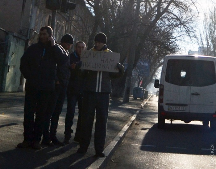 Сотрудникам полиции периодически удается уговорить участников акций на время уйти с перехода, чтобы транспорт хоть как-то ехал. Те в свою очередь становятся вдоль проезжей части с плакатами «Дайте нам работать».