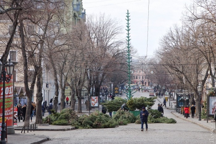 На главной улице Одессы начали установку новогодней ели, передает корреспондент «Думской».