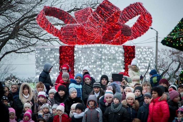 Елку зажег святой Николай, которого, как рассказал зрителям ведущий, пригласил в город мэр Труханов.