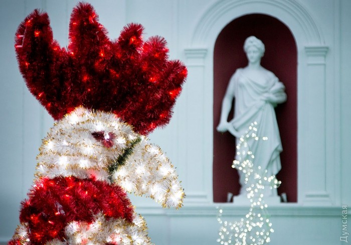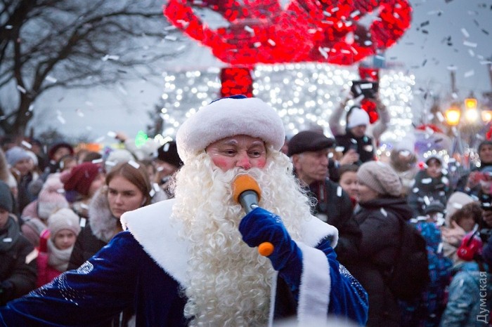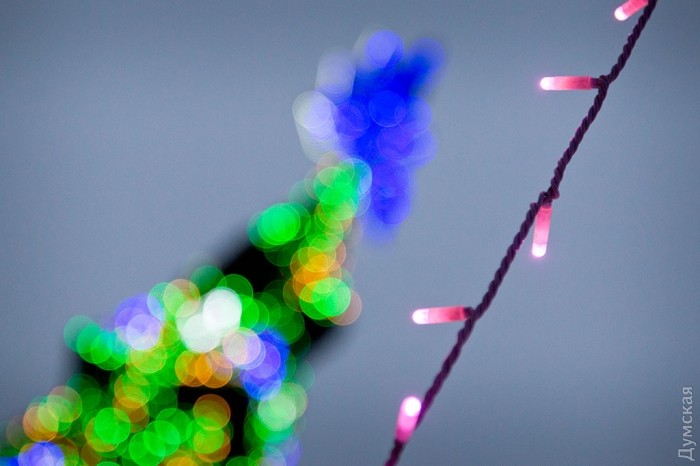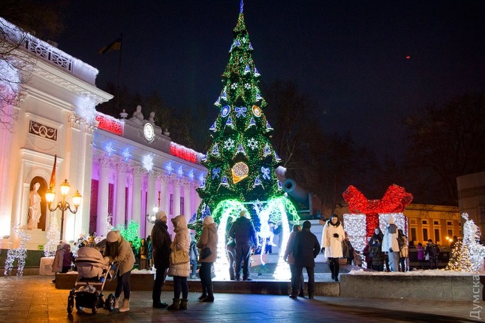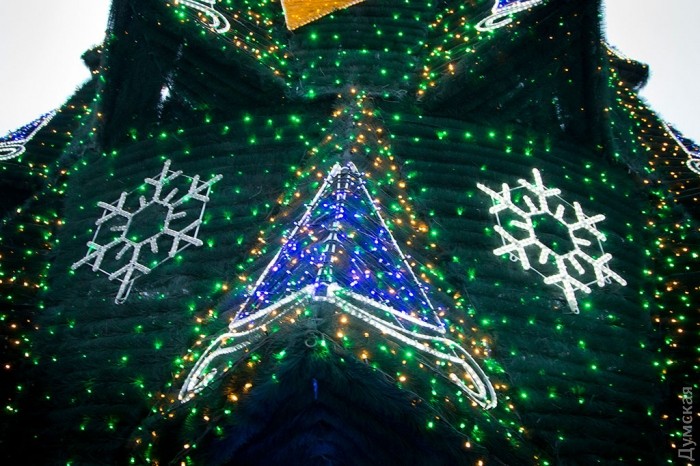 Главная новогодняя елка Одессы зажгла сегодня праздничные огни на Думской площади, передает корреспондент «Думской».