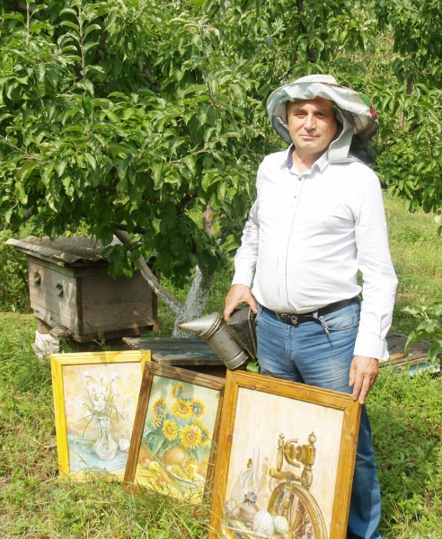 По-особливому, гармонійно і колоритно виглядали живописні полотна пасічника, коли він розставив їх для огляду біля вуликів, у садочку. На цей вернісаж злетілися навіть бджілки. Здивовано облетівши нафарбовані соняхи і букет нарцисів, знову подалися у своїх справах. Буває, летять