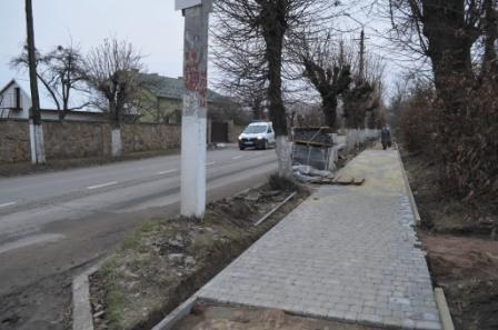 Інші робітники цієї організації не покладаючи рук трудяться на вулиці Грушевського. На тротуарі, який проходить від адміністративної будівлі райради та райдержадміністрації й до дитячого відділення районної лікарні, вони теж укладають нову плитку, яка займе до 900 квадратних метрів.