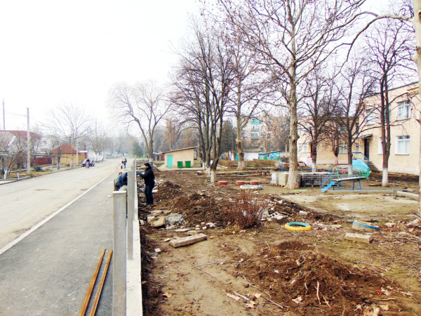 В Измаиле продолжаются работы в детском садике «Маяк». Капитальный ремонт дороги на ул. Куликова, с тыла дошкольного заведения, с устройством тротуара, которого тут никогда не было, повлек за собой ремонт ограждения детсада.