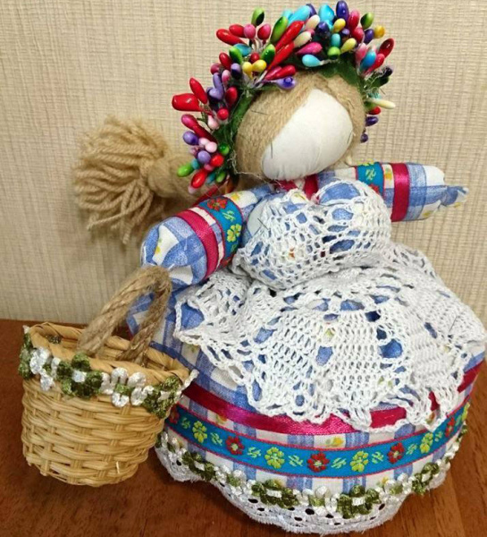 Кукла оберег или берегиня – отнсится к особой категории. Она как бы заменяла собой человека, отвлекала злые силы и берегла своего хозяина. В мифологии тело человека – это три мира Вселенной. Голова олицетворяла небо, поэтому как женщины всегда покрывали голову платком, также покрывали и кукольную голову. Ее набивку валяли из очеса собственных волос, шерсти животных, хлопьев от конопли, тряпок. Наполнителем кукол были зола и крупа, как жизнь отгоревшая, так и зарождающаяся. Изображение лица было запрещено. Считалось, что глаза, нос, рот, даже нарисованные, это врата, через которые могут проникнуть злые силы. Круглая голова символизировала солнце, стабильность и защищенность. Туловище куклы – это связь с нижним миром – с миром предков, поэтому у нее отсутствовали ноги, «чтобы не убежала», ведь она член семьи, и ею дорожат. Кукла должна была «давать покой», поэтому и руки не изображались.