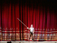 Надо сказать, образ Дон Кихота проходит буквально по краю сюжета этого старинного балета, отражающего всего один эпизод знаменитого романа Мигеля Сервантеса да Сааведра. Главные герои здесь – Китри и Базиль, которым помогает соединиться странствующий рыцарь. Артист, исполняющий партию Дон Кихота, даже не танцует, достаточно пантомимы. Рыцарем Печального Образа стал для фестивальной публики Вячеслав Кравченко. Дон Кихот, неуклюже управляющийся с огромным копьем, попадает в солнечную Барселону, где как раз бушует народный праздник, дамы танцуют с кавалерами, а строгий отец склоняет дочь к браку не с любимым красавцем, а с богатым дворянином. Вы же понимаете, на чьей стороне окажется романтичный пожилой рыцарь?