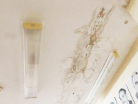 На третьем этаже в блоке «А» потолки вокруг плафонов мокрые. Вода пробралась на второй этаж.