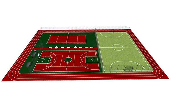За задумом проектантів, тут має розміщуватись два поля: одне – для міні-футболу, інше – пристосоване для занять з волейболу, гандболу та великого тенісу. Навколо – індивідуальні бігові доріжки з сучасним покриттям. Загальна площа майбутнього комплексу – приблизно 2800 м² (45 м на 60 м).