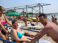 Це перше, на що я звернула увагу, озирнувшись навколо. А потім зрозуміла, чому тут по-домашньому затишно: тут майже всі один одного знають. Не день-два, а з року в рік. Багато хто з товариства інвалідів Суворовського району. Два рази на тиждень сюди приїжджає автобус, який привозить людей з товариства прямо на пляж.