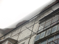 Жители дома № 1 по ул. Садовой г. Кодыма Одесской области снова терпят бедствие. Снежные лавины, которые сходят с крыши пятиэтажного дома уже нанесли первые убытки. Разбиты оконные откосы, телевизионные антенны, виноградные арки. Снежные глыбы летят на крылечки дома, на дорожки, создавая угрозу для здоровья и жизни жителей дома.