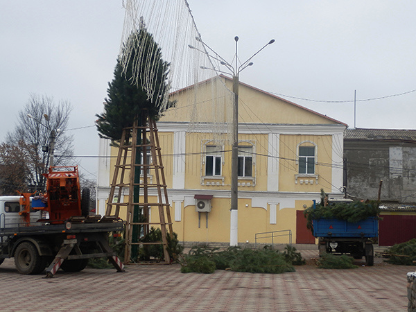 На центральной площади г. Балта начался монтаж каркаса для главного новогоднего символа – праздничной ели.
