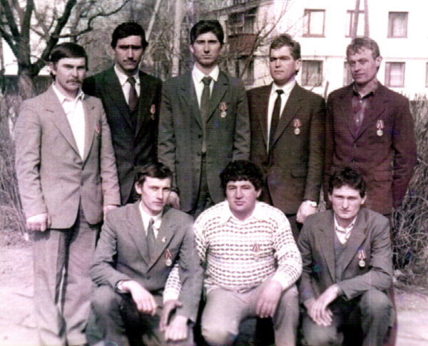 На знімку: Знам’янські інтернаціоналісти М.І. Пачев, В.І. Чабанов, О.Г. Писарський, М.К. Шевців, В.М. Калашлинський (верхній ряд),
