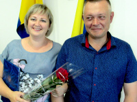 На знімку: Миколаївський редактор С. Палієнко і ширяївська журналістка В. Томило на вшануванні журналістів в обласній раді (2018 рік)