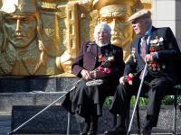 На знімку: ветерани Є.Д. Добудько і Д.З. Волошин на параді Перемоги у Любашівці (2016 рік)