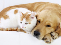 Кот периодически навещал тосковавшего пса и подолгу просто сидел напротив него.