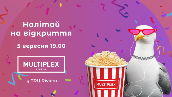 5 вересня в 19:00 відбудеться відкриття кінотеатру Multiplex в ТРЦ Рів’єра. На гостей чекає розважальна програма, частування, DJ та розіграші безлічі призів.